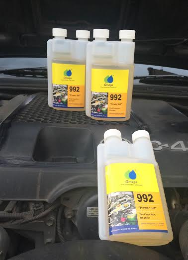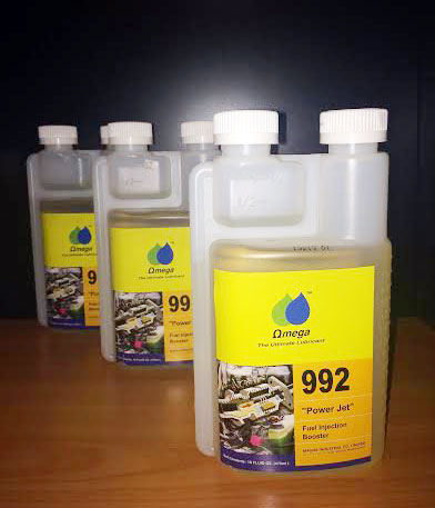 OMEGA 992“เพาเวอร์ เจ็ท” สารเพิ่มกำลังของหัวฉีดน้ำมันเชื้อเพลิง ที่ใช้เติมได้ทั้งในน้ำมันดีเซล และเบนซินในรถยนต์ด้วยการเติมลงไปในถังแล้วเติมน้ำมันให้เต็ม มันถูกออกแบบ และผลิตมาเพื่อคืนสภาพของประสิทธิภาพ ของหัวฉีดน้ำมันเชื้อเพลิงอย่างรวดเร็วให้มีสมรรถนะสูงเหมือนใหม่ยิ่งไปกว่านั้น OMEGA 992 ยังช่วยควบคุมการเกิด “ไอน้ำกั้น ( Vapour Lock)” หรือ มีน้ำปนมาในระบบน้ำมันเชื้อเพลิง ที่เป็นสาเหตุของการสตาร์ทติดยาก และในรอบเดินเบาเครื่องจะสั่น และการตอบสนองการเร่งที่เฉื่อย ( เร่งไม่ขึ้นอืด ) ประโยชน์เพิ่มเติมของ OMEGA 992 คือเริ่มการทำงานตั้งแต่ถังน้ำมันเชื้อเพลิงโดยมีสารยับยั้งการเกิดออกซิเดชั่นที่จะช่วยปกป้องถังน้ำมันเชื้อเพลิง ท่อส่งน้ำมันเชื้อเพลิง ปั๊มน้ำมันเชื้อเพลิง หัวฉีดน้ำมันเชื้อเพลิง และชิ้นส่วนภายในทั้งหมดของระบบหัวฉีดน้ำมันเชื้อเพลิงของเครื่องยนต์จากการเกิดสนิม ( จากความชื้น )