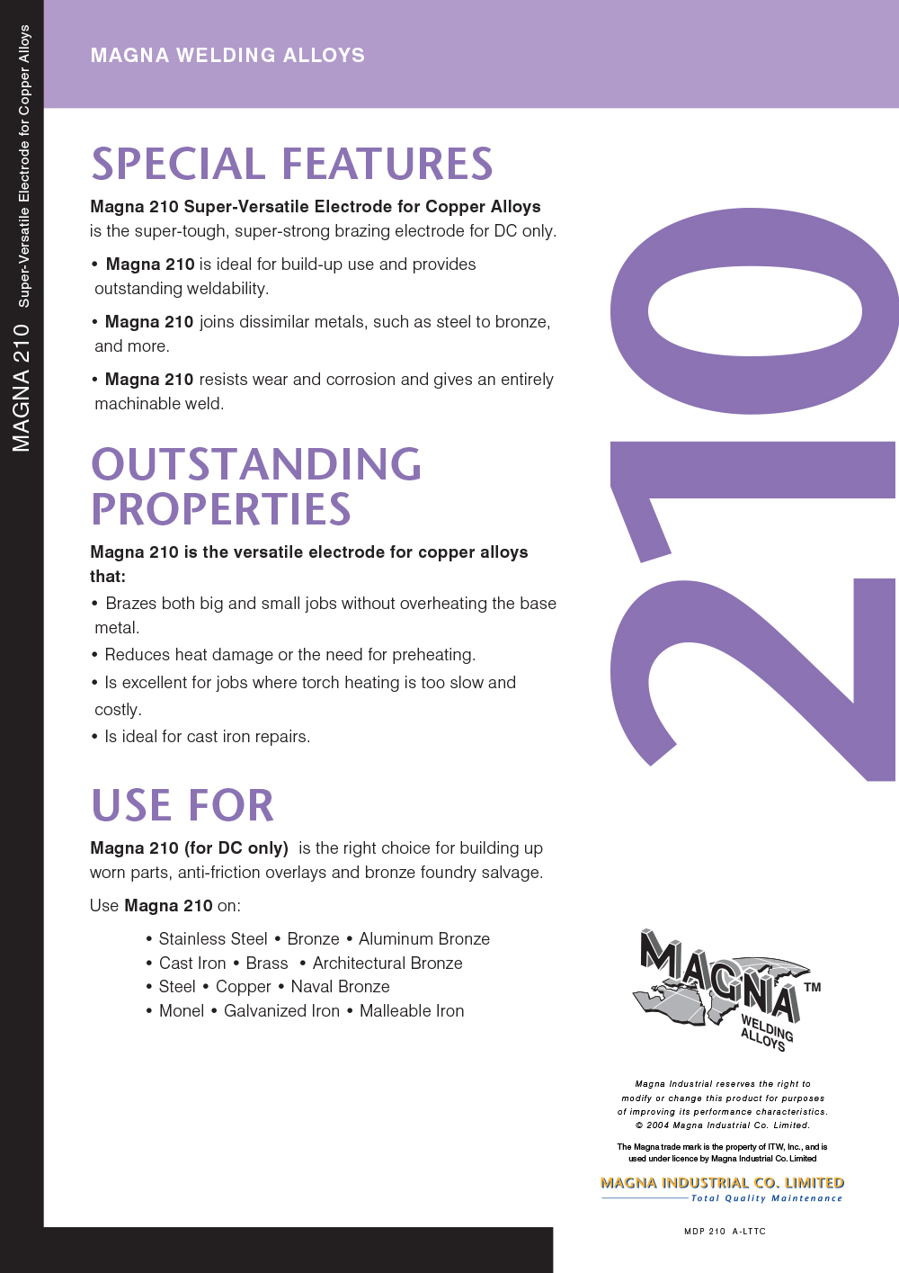MAGNA 210 เป็นอัลลอยด์แล่นประสานไฟฟ้าต้านทานกรดอเนกประสงค์