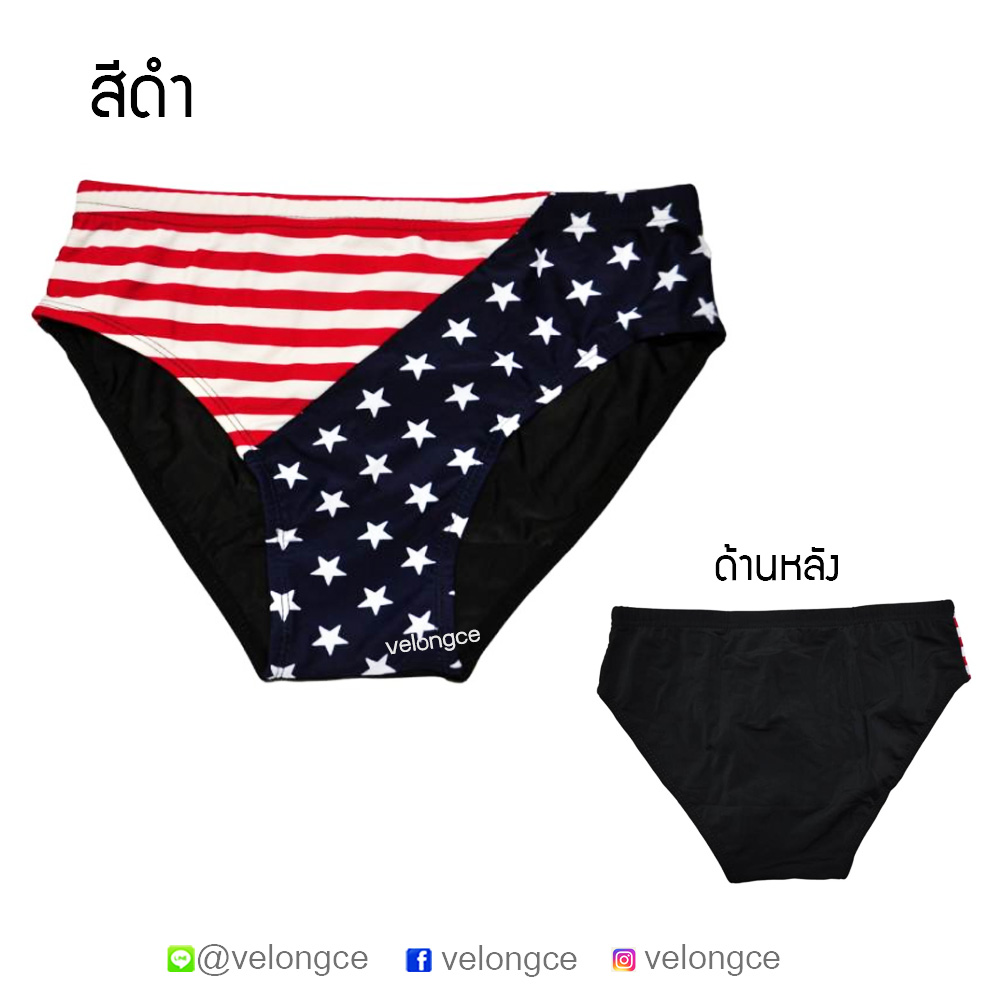 กางเกงว่ายน้ำผู้ใหญ่ แบบบิกินี่ ลายธงชาติสหรัฐ รุ่น 518 size M-L-XL-XXL-3XL-4XL