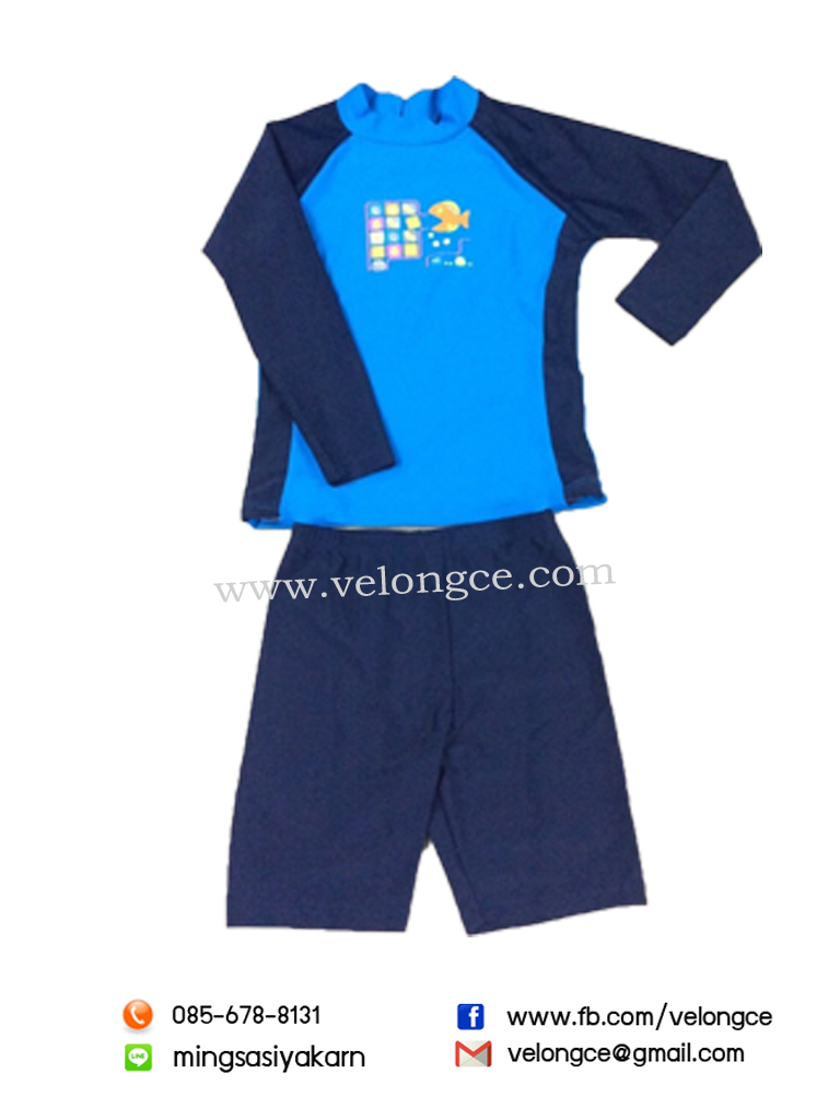 LL026 ชุดว่ายน้ำเด็กแขนยาว ขายาว 2 ชิ้นลายลิง Size S-M-L-XL-XXL สีฟ้า น้ำเงิน เหลืองและกรม