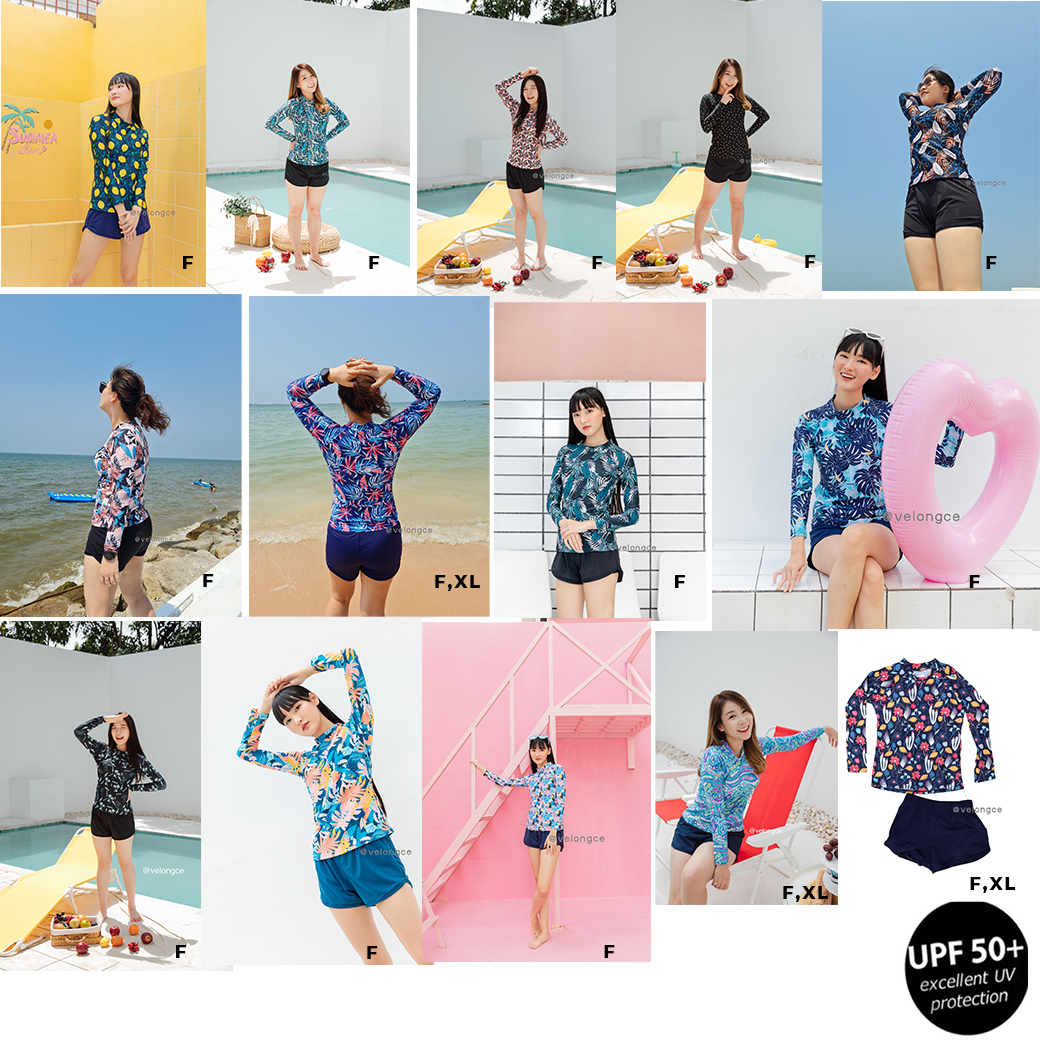 ชุดว่ายน้ำเด็ก ชิ้นเดียวแขนยาว ฟรี! แถมหมวกลายเดียวกับชุด รุ่น F61721 ไซส์ 8-10-12-14-16