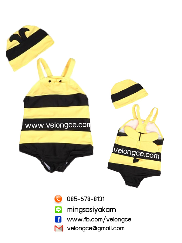 BEE01 ชุดว่ายน้ำรูปผึ้ง น่ารัก มีปีกน้อยๆ 1 ชิ้น พิเศษ! แถมหมวกผึ้ง