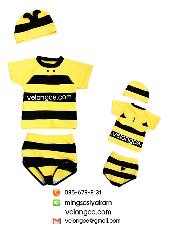 BEE02 ชุดว่ายน้ำรูปผึ้ง มีปีกน้อยๆ 2 ชิ้น พิเศษ! แถมหมวกผึ้ง