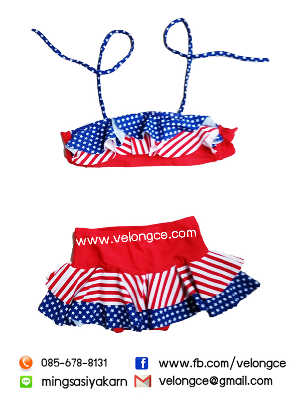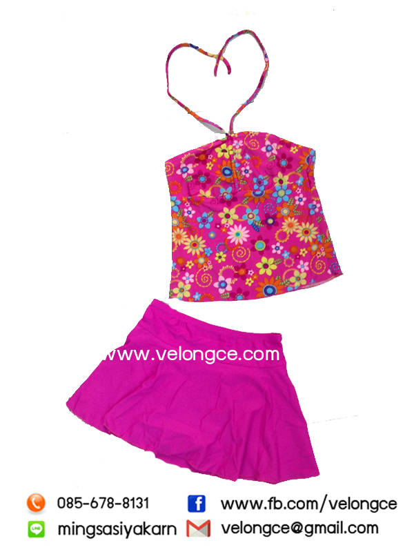 รุ่น 278 ชุดว่ายน้ำเด็กเอวสูง ลายน่ารัก เสื้อสั้นผูกคอ ผูกหลัง กระโปรงสวม size M-L-XL