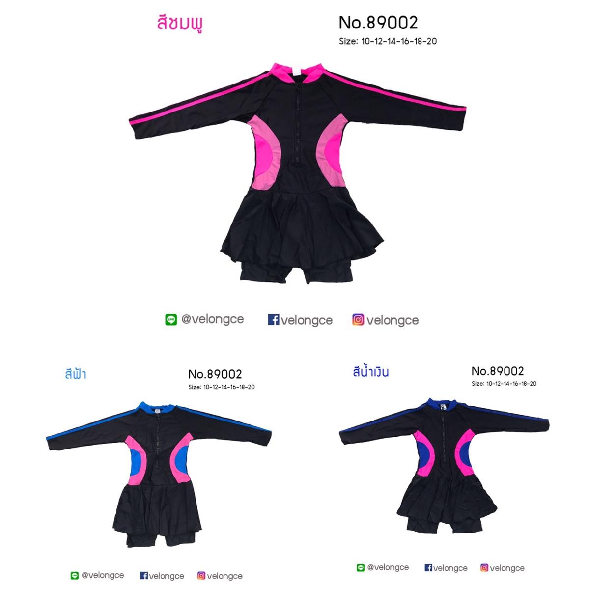 รุ่น 89002 ชุดว่ายน้ำเด็กหญิง ชิ้นเดียว แขนยาวกระโปรงมีกางเกงขาสั้น