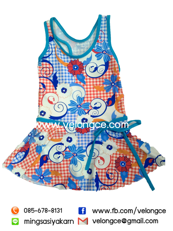 รุ่นT611403 ชุดว่ายน้ำเด็กชิ้นเดียวลายทั้งตัวเสื้อกล้าม กระโปรง ลายสดใสน่ารัก Size 10-12-14-16-18-20-22