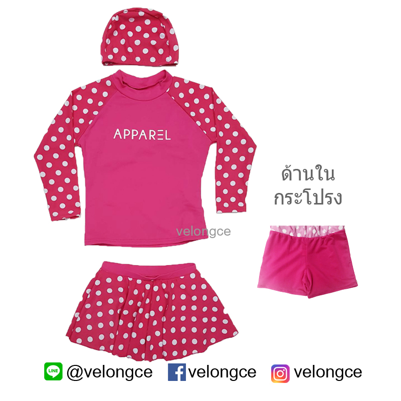 ชุดว่ายน้ำเด็กโต 2 ชิ้น แขนยาว คู่กระโปรง ด้านในเป็นกางเกงขาสั้น