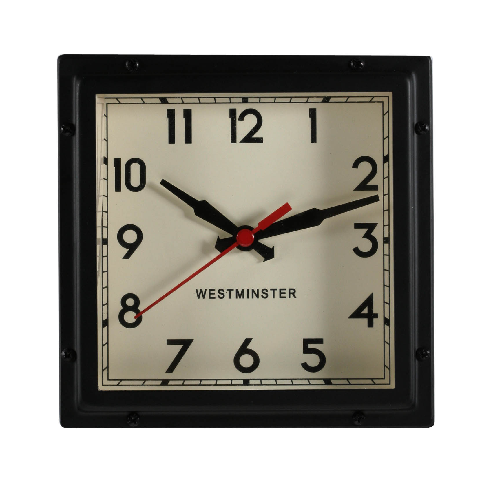นาฬิกา style อังกฤษ ทรงสี่เหลี่ยม ขนาด 6 นิ้ว วัสดุทำจากเหล็กสีดำด้าน เครื่องญี่ปุ่น