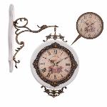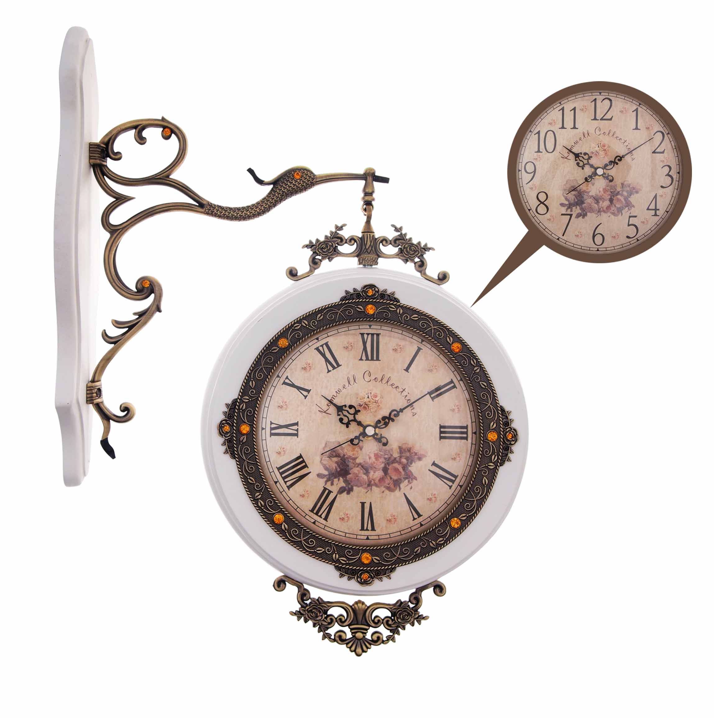 นาฬิกา 2 หน้า ทำจากไม้พ่นสีช้าว ด้านหนึ่งเป็นเลขโรมัน ด้านนึงเป็นเลขอาราชิค