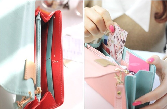 กระเป๋า รุ่น All in one -K เป็นกระเป๋าใส่เงิน ใส่โทรศัพท์ สองสีสลับแบบเก๋ๆ