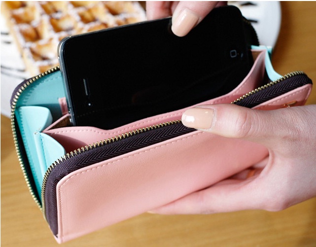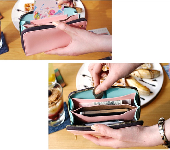 กระเป๋า รุ่น All in one -K เป็นกระเป๋าใส่เงิน ใส่โทรศัพท์ สองสีสลับแบบเก๋ๆ