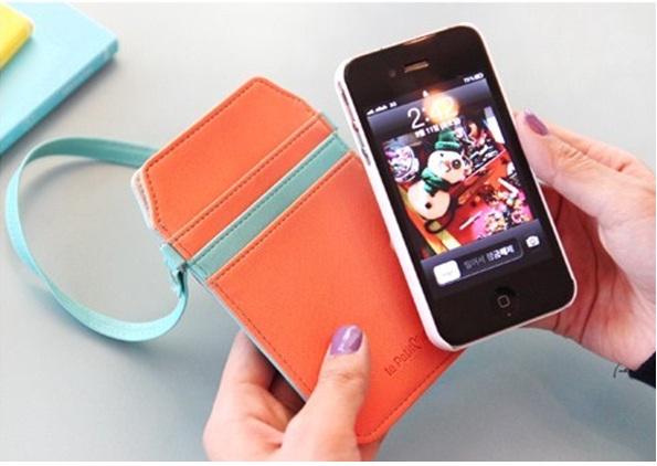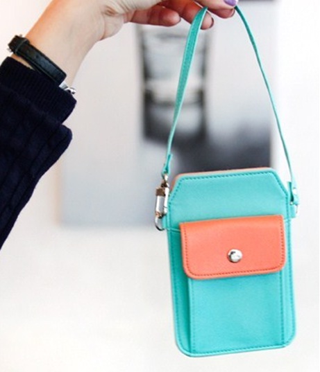 กระเป๋าใส่ไอโฟน 4 รุ่นสีสลับ กระเป๋าหิ้ว เก๋น่ารัก มีชองใส่เงินด้านหน้า
