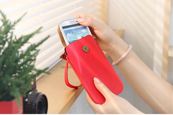 กระเป๋า All in one-A เป็นกระเป๋าหนังเรียบใส่ได้ไอโฟน 4/5/ซัมซุง S/Note