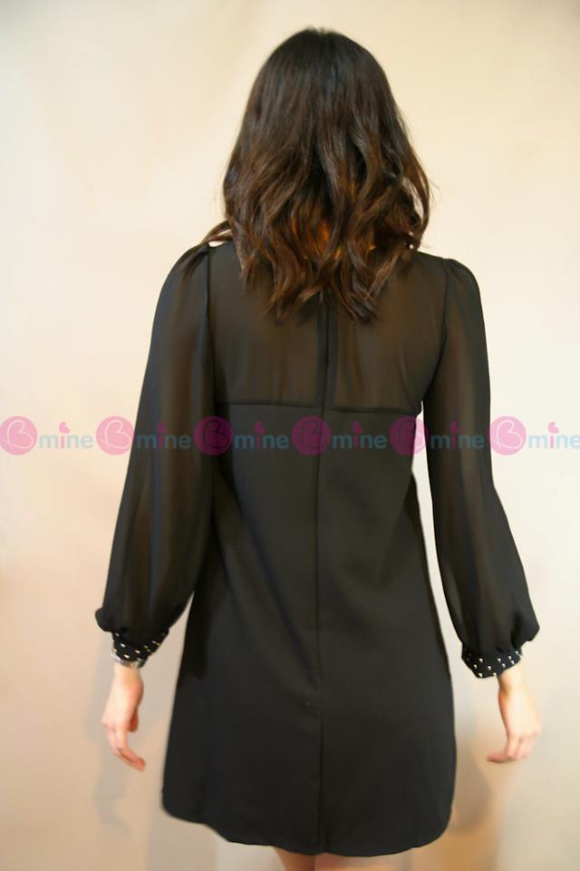 เดรสผ้าชีฟองสีดำ ปักหมุดสีทอง ซิปซ่อนด้านหลังค่ะ
