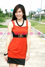 เดรสแขนกุด ผ้าหนังไก่เบาสบาย แต่งกระโปรงพลีท แต่งผ้าตัดต่อสีดำ และกระดุมเพชร เอวยางยืด มีซับในช่วงกระโปรง