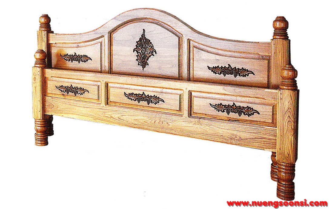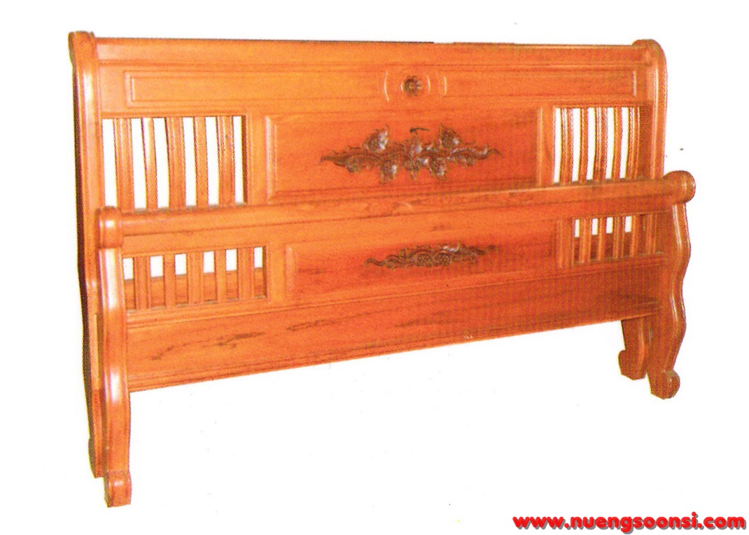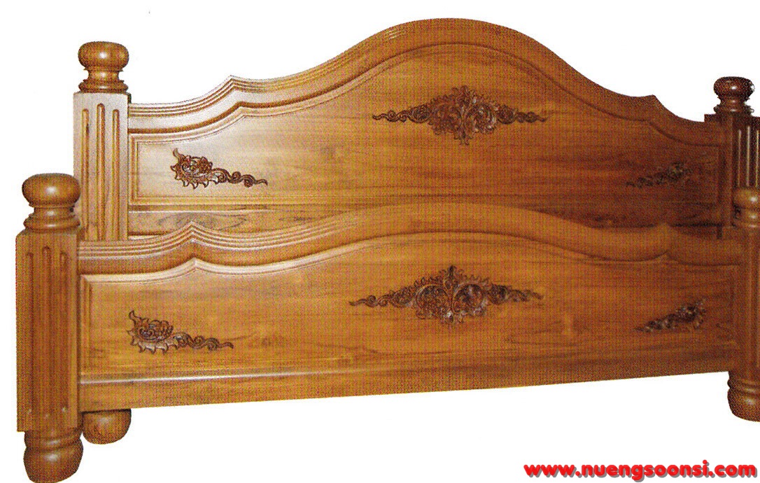 เตียงไม้สัก 6 ฟุต ลูกฟัก แกะลาย( K-281 )
