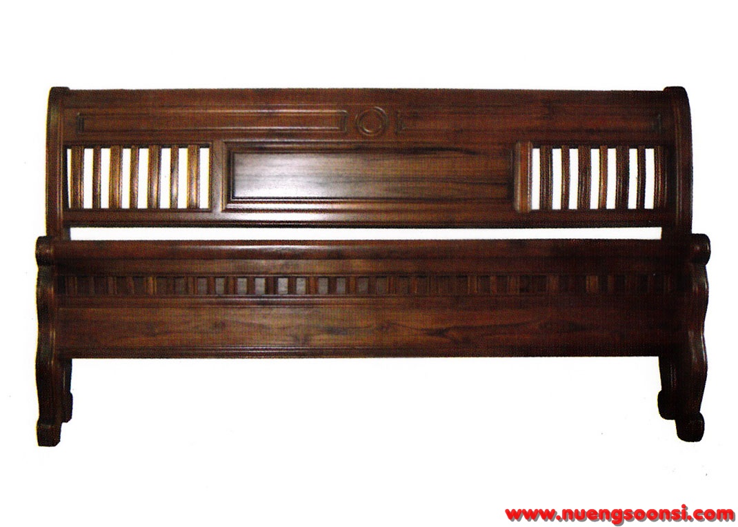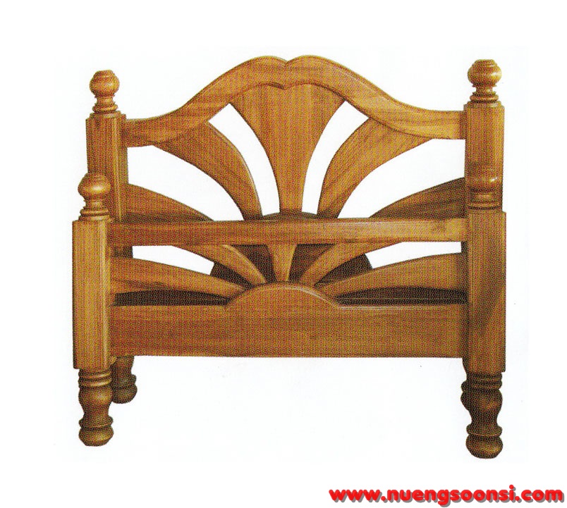 เตียงไม้สัก 3.5 ฟุต ลายเจาะ ขากลึง ( K-282 )
