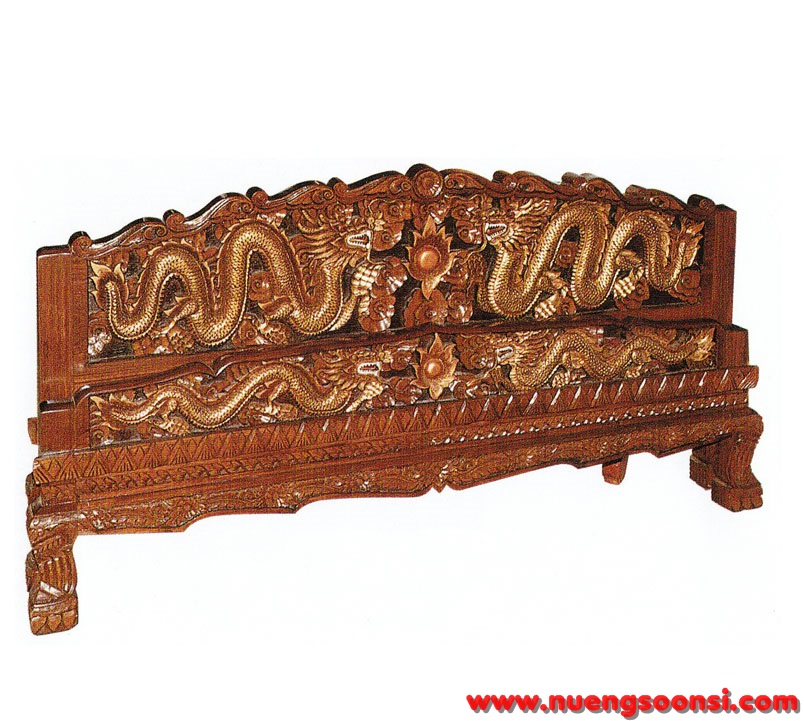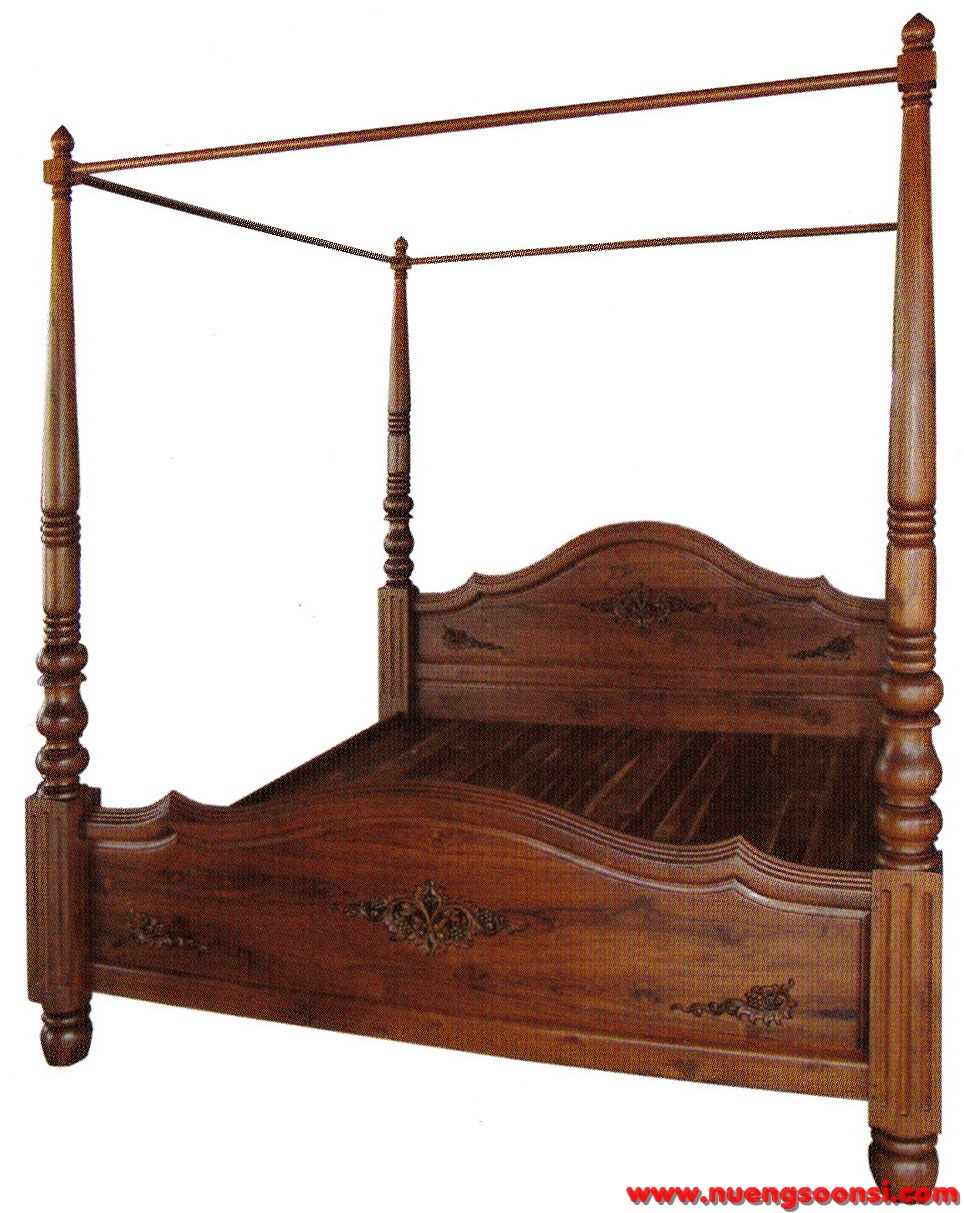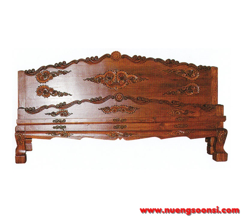 เตียงไม้สัก 6 ฟุต แกะลาย ( K-280 )