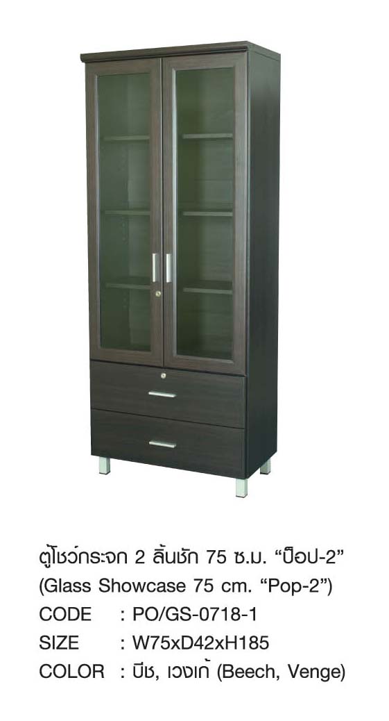 เฟอร์นิเจอร์ไม้ : ตู้โชว์กระจก 75 cm.