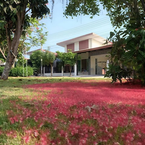 ให้เช่าบ้านเดี่ยวหลังใหญ่พนัสชลบุรี สิรัชชา พาร์ค ใกล้นิคมอมตะพานทองชลบุรี เฟส 8,9,10 บ้านอยู่หน้าสวนบรรยากาศดี