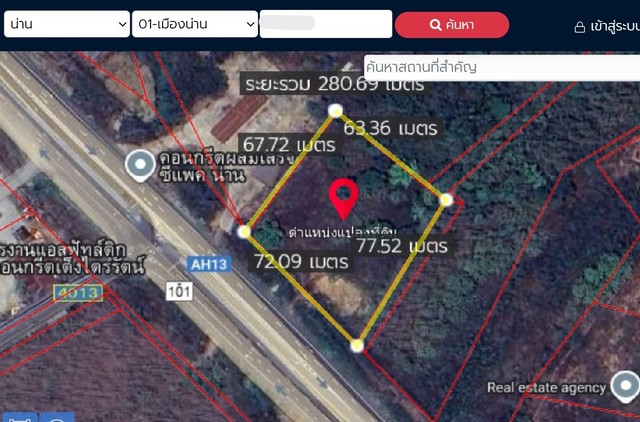 ขายที่ดิน 2-3-81ไร่ 8.3ลบ. ติดถนนบายพาส101 AH13 เยื้องโรงโม่ ส.เต็งไตรรัตน์ ต.ผาสิงห์ อ.เมือง น่าน